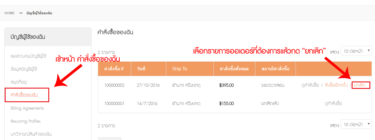 คุณสามารถเข้าไปยกเลิกคำสั่งซื้อได้โดยตรง ที่นี่