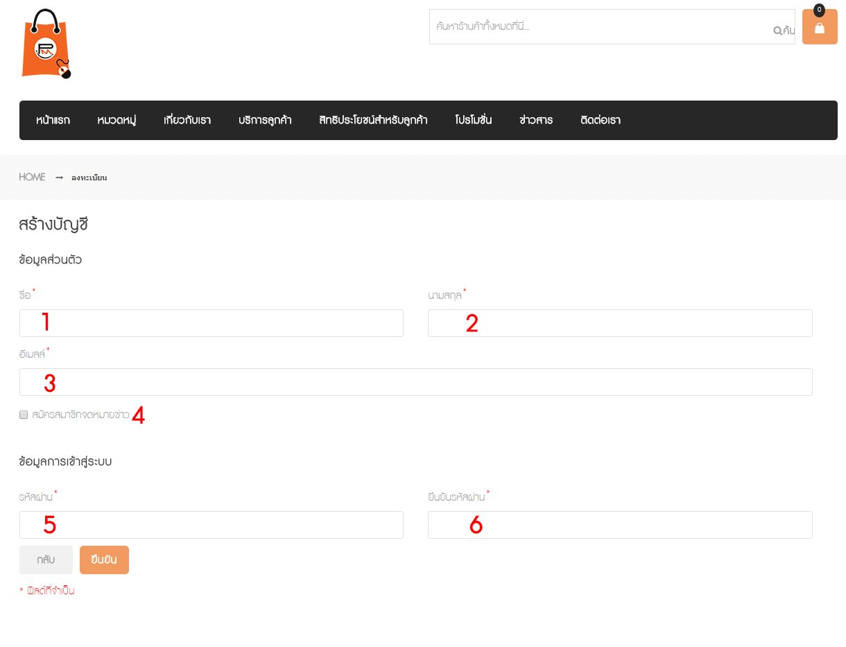 ท่านสามารถสมัครสมาชิก ด้านบน เมนู ดังภาพ